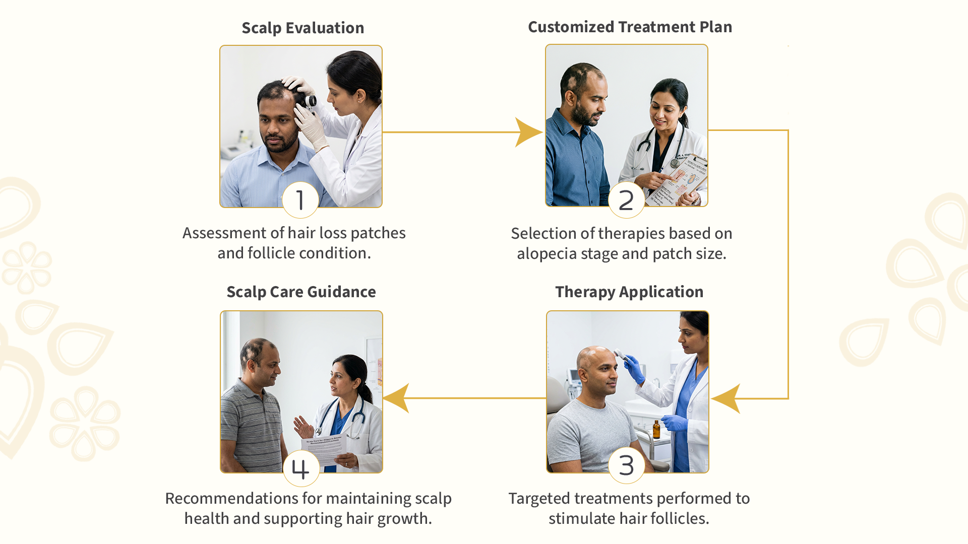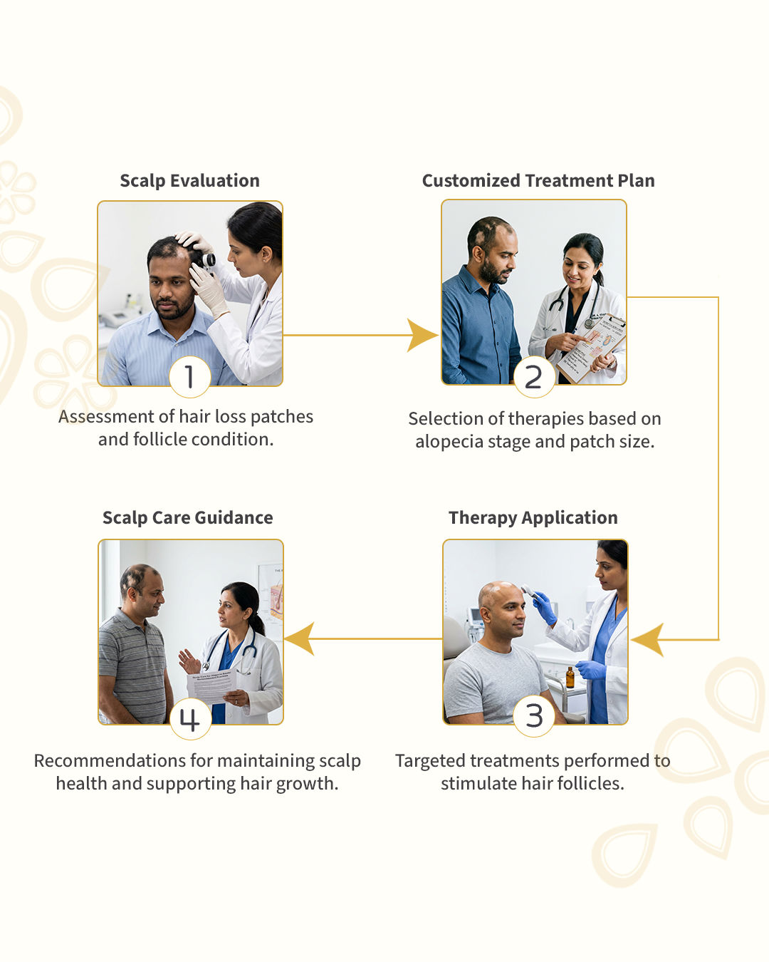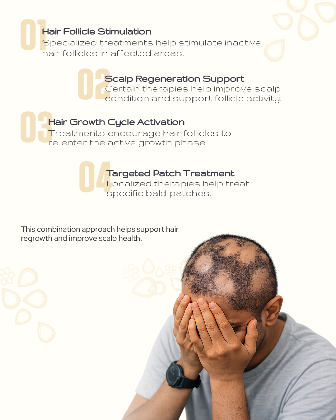 Professional treatments may combine multiple therapies depending on the size and location of hair loss patches.