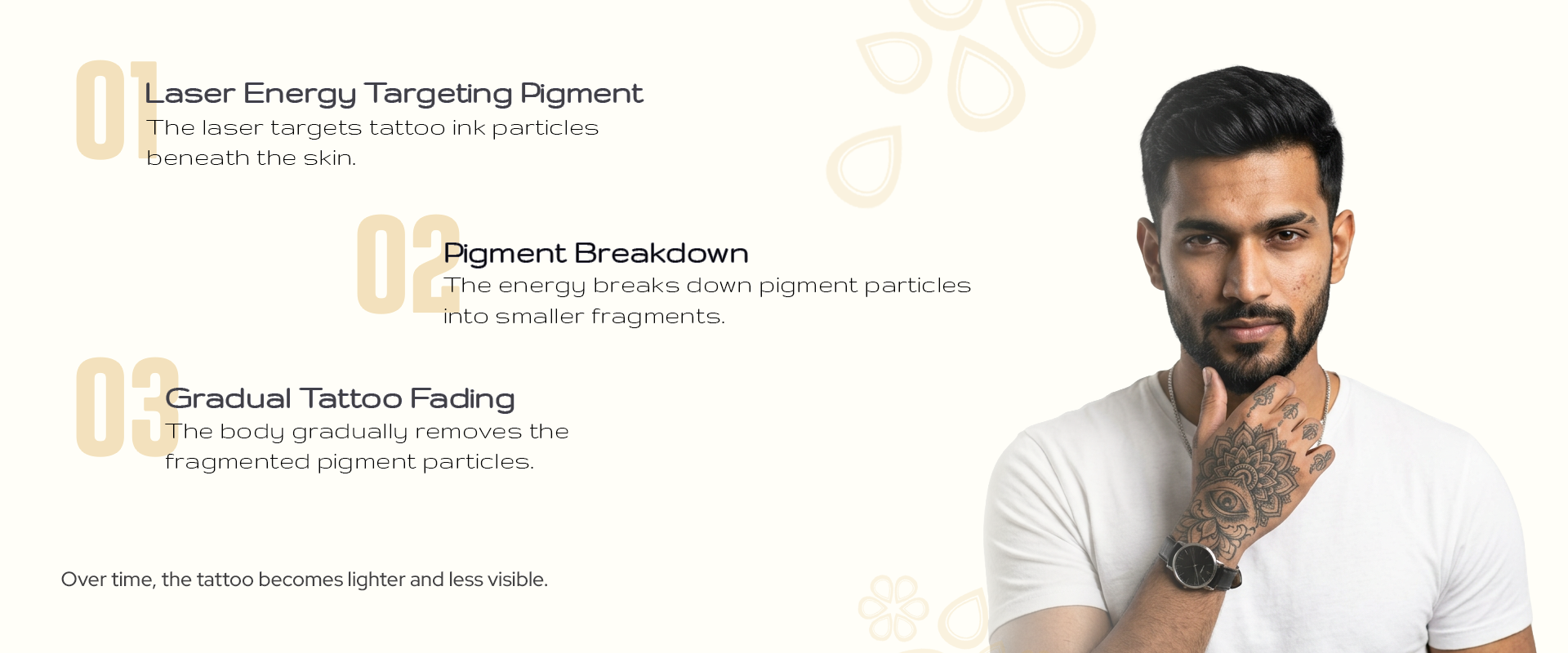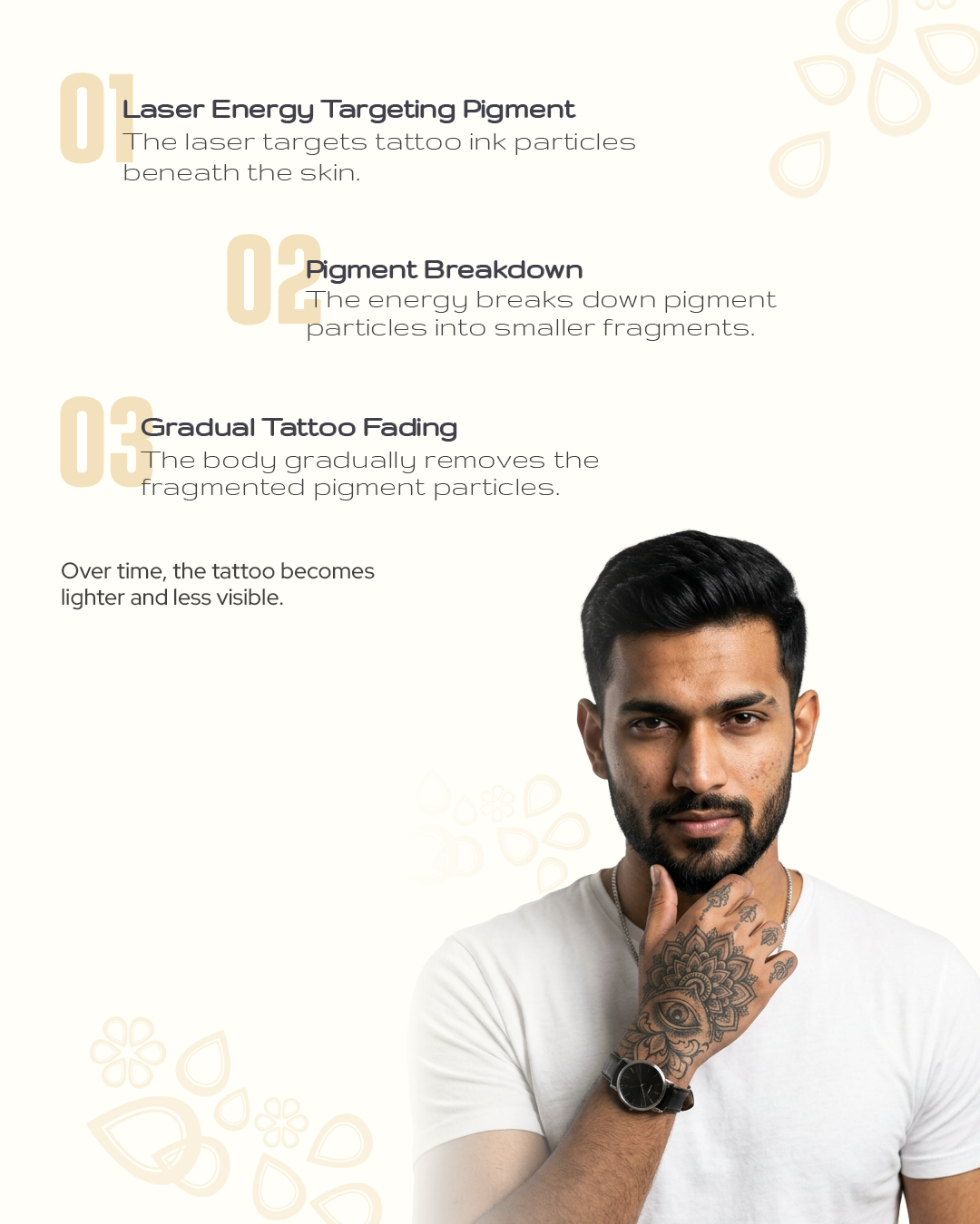 Once the pigment particles are broken down, the body gradually removes them through natural processes, allowing the tattoo to fade over time.