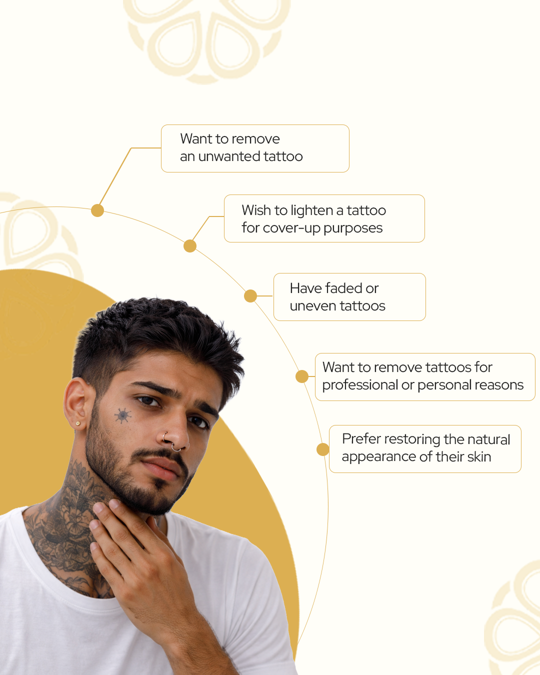 Tattoo removal therapy may benefit individuals who: